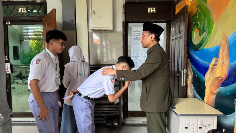 Dari pantuan di lokasi SMA Khadijah, tampak Kepala SMA Khadijah H.M. Iqbal, M.Si bersalaman satu per satu kepada setiap siswa yang akan memasuki ruang ujian TKA. Seraya mendoakan ketenangan dan kelancaran para siswa yang akan mengerjakan ujian TKA ini (3/11)