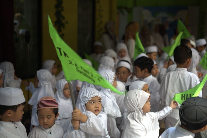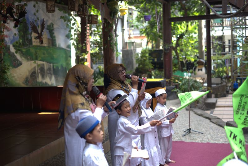 Kegembiraan semakin terlihat ketika para siswa ikut membaca mahalul qiyam dengan mengibarkan bendera secara larut dalam bersholawat bersama- sama yang dipimpin oleh Bu Ikha dan Bu Is. Setelah pembacaan sholawat selesai, anak-anak diajak berdoa yang dipimpin oleh Bu Mawaddah.